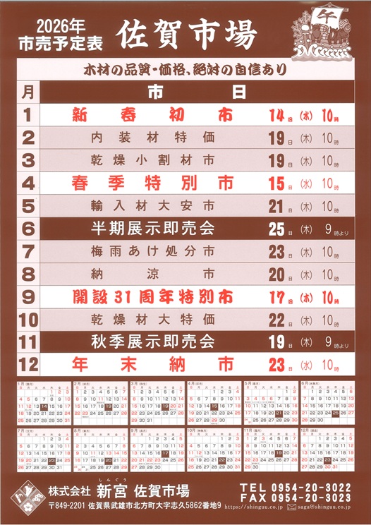 2026年市売予定表